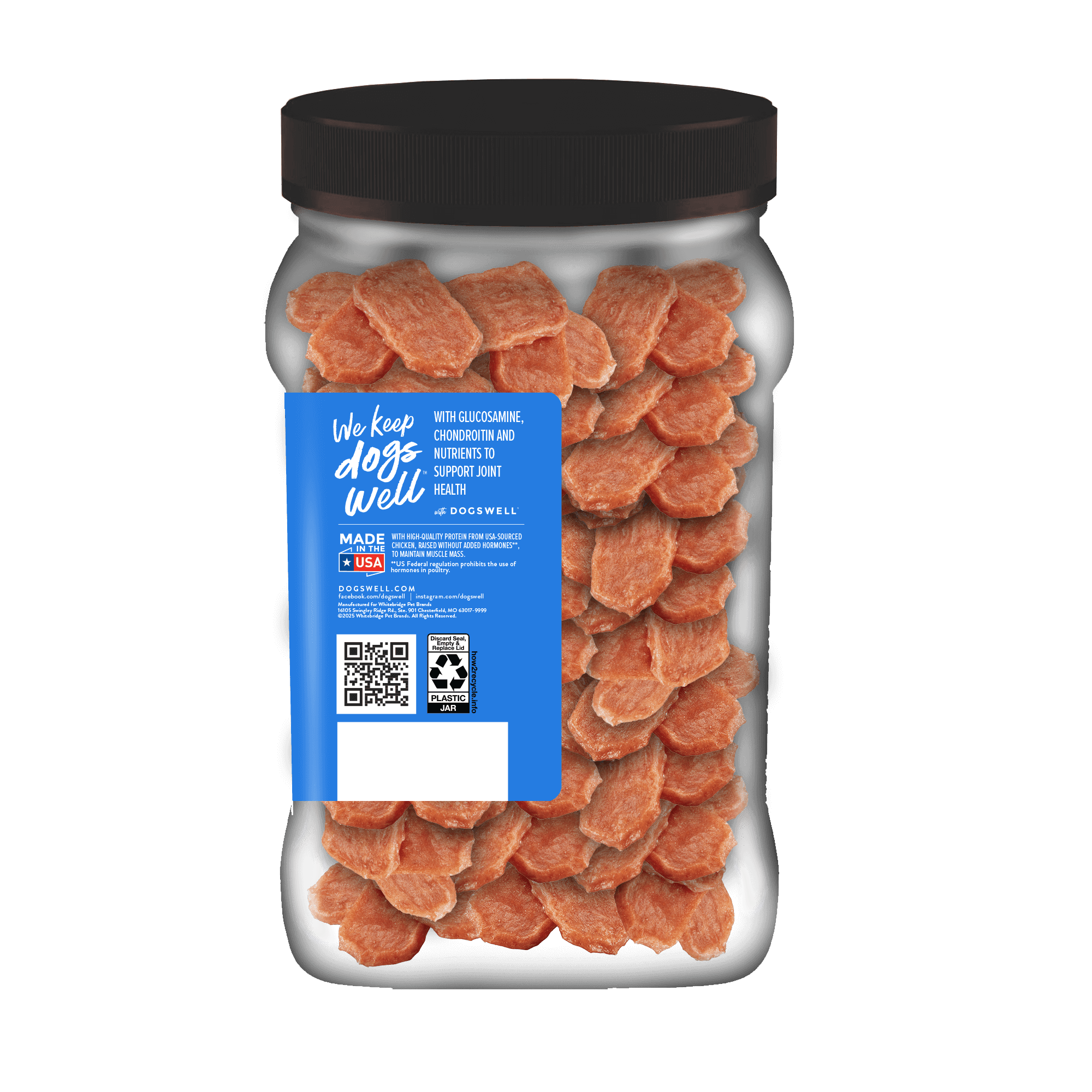 This product is intended for supplemental or intermittent feeding only. Dogswell® treats are not intended to replace your dog’s diet. Break into smaller pieces for small dogs, and always observe your dogs when they consume treats. Feed as recommended.
